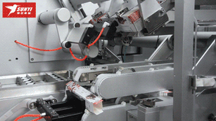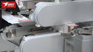 折盒機構將紙(zhǐ)盒兩側(cè)小耳折疊;
