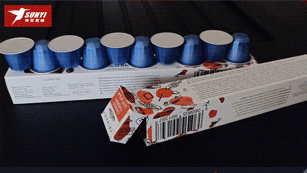 推料機構將咖啡膠囊推入紙盒,完成裝盒(hé);